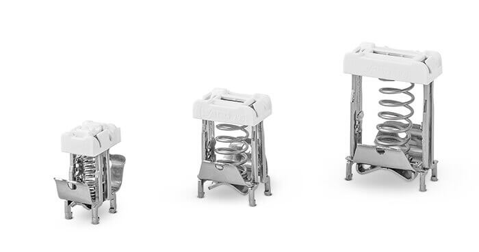 开启、锁定、安装和释放——新型790系列屏蔽线连接器借助锁定机构可如此轻松地安装到汇流条上。较大的凹形拉手使连接器使用更方便,因为通过它可以毫不费力地压紧弹簧。快速安装以及大面积低阻连接使得屏蔽线连接器能够提供有效屏蔽电磁干扰,并可靠泄放高频干扰电流。
