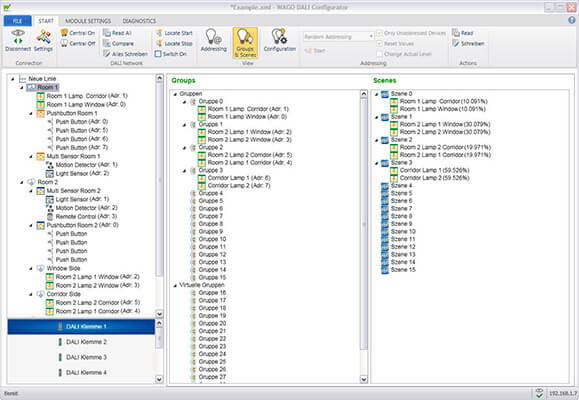 您可以亲身体验DALI配置软件不断提升的性能,并且在DALI主站模块和DALI网络节点之间更快的寻址以及流程处理速度明显加快了DALI项目的创建。