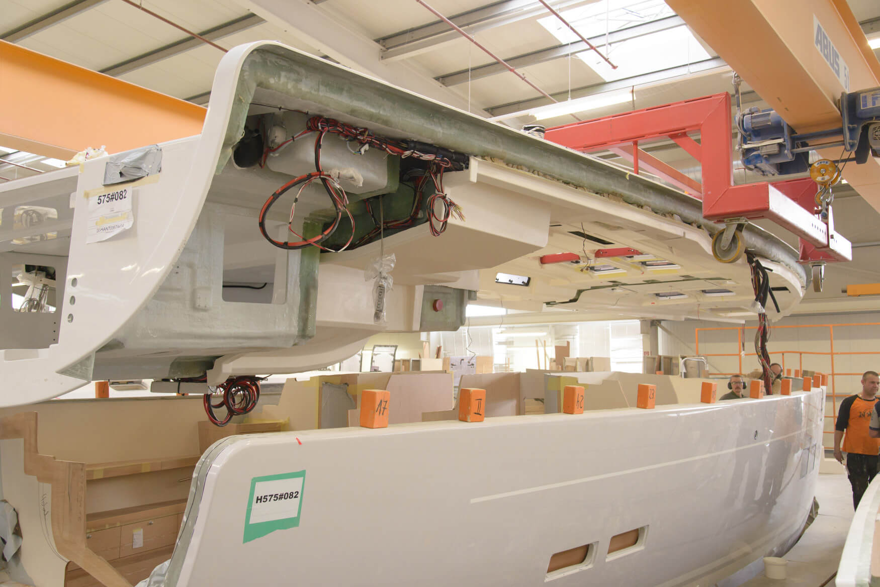 为了最大程度地优化制造过程,Hanse游艇公司也十分注重船载电子器件。因为消费者们不仅期望最富创新技术的航海和驾驶技术,而且日益注重能够提升航行舒适度的电子设备—从洗碗机、洗衣机、便携式葡萄酒冷却器到空调系统以及电动马桶,所以相关工作也变得越发复杂和高要求。