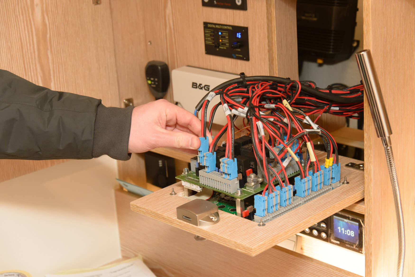 目前Hanse游艇公司只有两种版本的“电源板”,一种较小,一种较大,以匹配其船舶尺寸,并且适用于所有的品牌和船舶类型。这是因为电路板有充足的预留空间,从而能够根据客户要求为最多的设备供电。