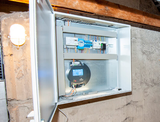 在Steinstraße街的住宅楼中,Domicil能源合作伙伴公司在一幢建筑物的屋顶安装了集中控制所有4个分系统的中央控制柜。感应传感器持续测量当前电力值。WAGO为此提供了789-620电流传感器,其测量范围为0A到80A,另有789-621,其测量范围为0A到140A。他们安装在导轨上并直接将测量值传输至已安装的控制系统中,以便进一步分析——而无需专用电缆。