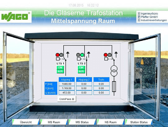 Web可视化——WAGO和 Pfeffer联合开发的正面玻璃式变电站的可视化解决方案。
