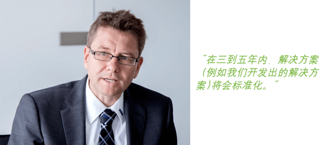 “为管理来源较为分散且不稳定的电能,以保持电力供应平衡,需要采用智能系统将电网中的发电机、电能储存及用电设备等所有组件关联起来”,Pfeffer表示。他认为首要任务是要扩大智能电网的应用范围,不仅要延伸到高压输电网络,还要延伸到低压电网。因为据Pfeffer称,小型电力生产商要通过低压网络将电流送入电网,而且用电设备也位于低压网络中。“本地智能配电站将在能源转型中发挥重要作用。”