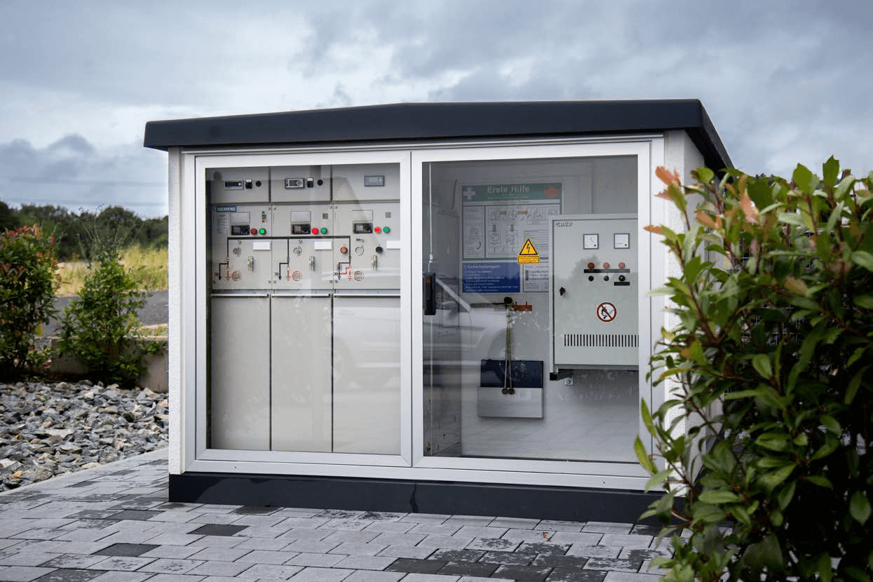 “可以说我们将‘千瓦’和‘千字节’融合在了一起,”Pfeffer表示。变电站站房本身是由Betonbau GmbH & Co.kG依据规范建造的;主要技术和千瓦电力(中压和低压)来自不同供应商;低压配电箱由位于艾斯莱本的Driescher Moosburg制造。