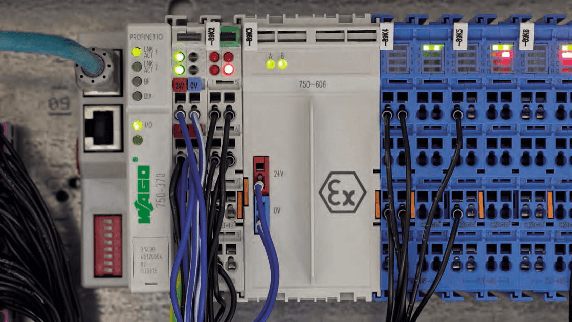 WAGO-I/O-SYSTEM 750系列可实现混合连接,从而在一个节点内处理防爆信号和非防爆信号。