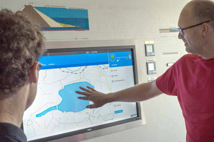 在大坝技术中心可将记录的大坝相关数据清晰地进行可视化——这意味着Matthias Sudholt可随时以直观方式查看Förmitztal大坝的水位。