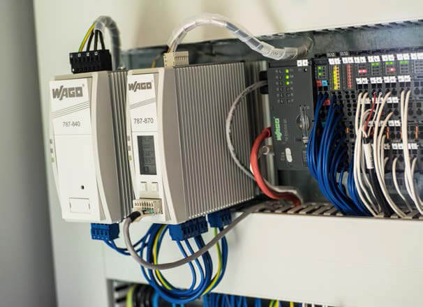 为控制流畅的数据流,水资源管理局采用WAGO的PFC200控制器执行大部分作业。外部分配箱和Förbau水位除外:此处采用的不是标准版WAGO-I/O-SYSTEM,而是XTR版,因为在受到气象因素干扰时,危险程度不断升级,这会对仪表和下游的自动化系统产生不良影响。“除了750系列,WAGO还提供全新WAGO-I/O-SYSTEM 750 XTR,这也是针对此类极端应用的定制解决方案。”Sudholt解释称(见下文)。787-840电源可由EPSITRON®-USV管理模块(787-870)保护,免受意外断电影响,用于为全部八个站点的I/O-SYSTEM供电。