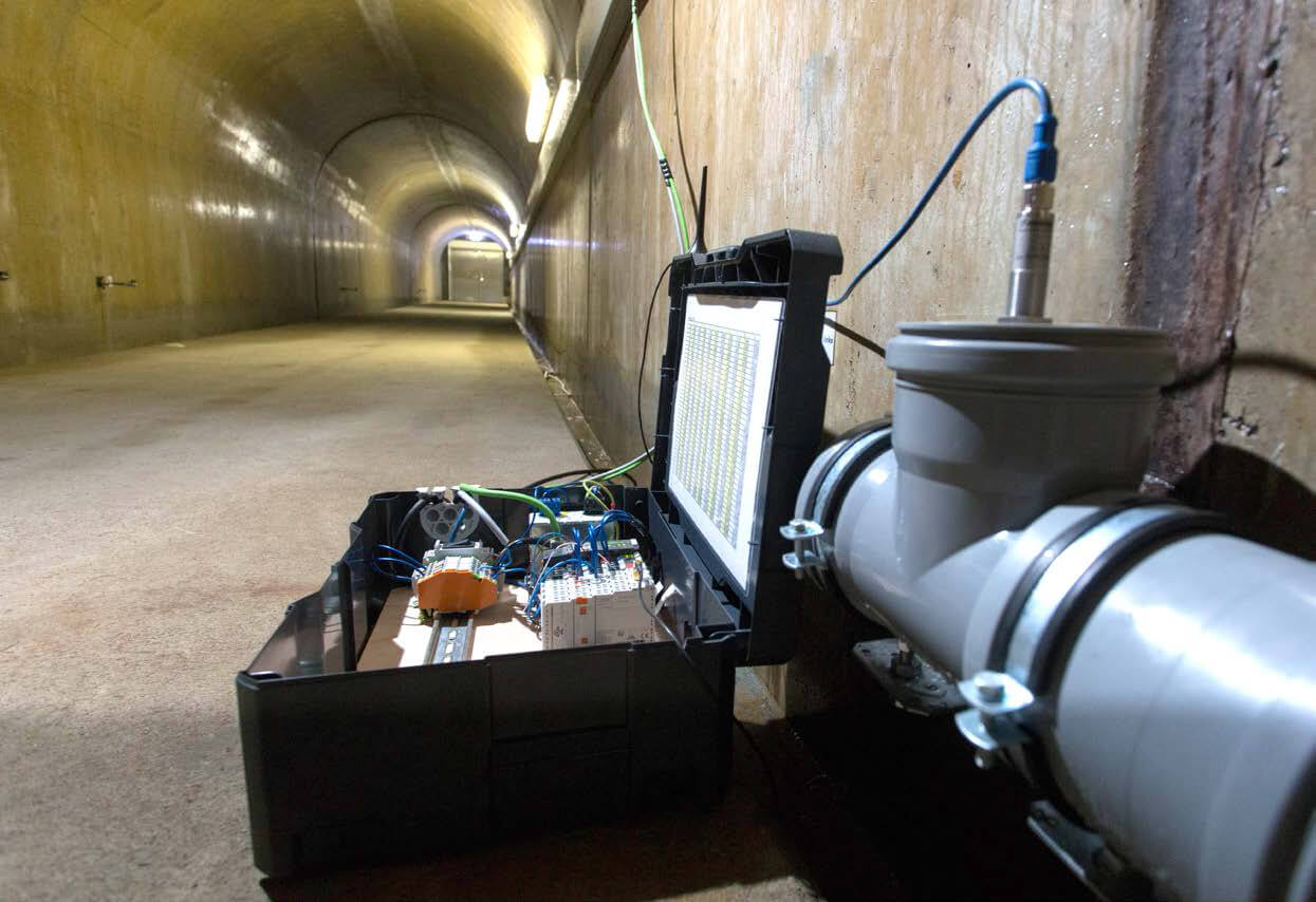 对于大坝上不需要持续监测的测量点,采用移动测量箱记录数据。使用此测量箱记录的数据存储在本地控制器上,并通过Bluetooth®传输至最近的开关柜。除了Bluetooth®天线,该测量箱上还装有WLAN网关,用于接入WebVisu,从而获取现场测量数据。