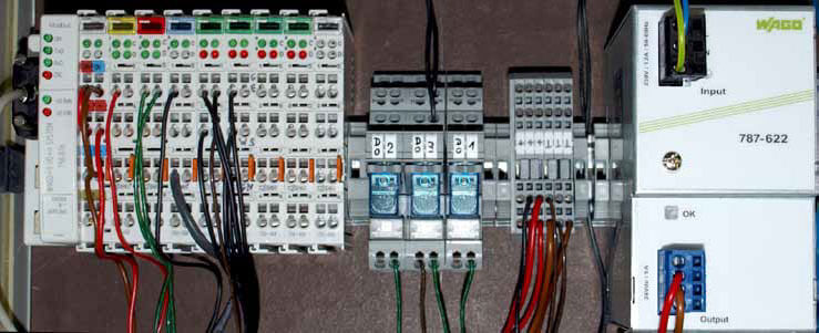 该系统的核心部件是一个控制箱。它包含一个PLC,可根据地下水位或交换水量对数据进行处理及对地下水泵进行自动调节。该WAGO PLC为模块化结构,可通过400余种不同的数字量和模拟量模块(I/O模块)进行自由扩展。它可通过这些I/O模块将压力测量转换器、流量测量装置以及其他探测器和传感器连接到控制系统。整个WAGO控制系统的供电任务由EPSITRON系列的开关稳压电源承担。电气连接通过280系列轨装接线端子实现。788系列带有继电器的继电器插座模块则可以在不改动布线的情况下进行继电器的更换。“各种各样的I/O模块以及WAGO PLC和模块化的结构,可以使我们满足客户的所有个性化要求,而无需对整体方案进行改动。”Joerg Boedecker (ORI公司的总经理)如此评价道。除控制箱外,还有一个专门的水泵控制箱(带有变频器、与控制箱之间的连接线缆以及一个手动装置),它可以用来直接控制潜水泵。