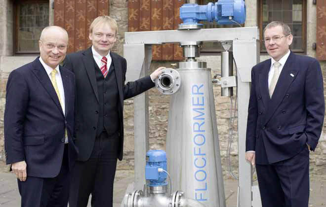 “污泥脱水工序的关键环节是絮凝结构。该工序通过“FlocFormer”反应器和测量系统优化了凝絮结构,使之较传统的污泥脱水工序提高30%的脱水率”CUTEC环境技术研究所总裁Carlowiz教授这样描述道:“由于污泥的干燥程度变得更高,所以焚烧处理时所需的能量消耗也被大大地降低了。此外,干燥污泥的重量较之前也减小了很多,从而使运输费也得到明显降低。”aquen公司总经理Christian Schroeder博士也说道。“污泥的处理开支占用了整个污水净化程序总开支的30%。目前在德国境内共有10000台位于不同地区的污泥处理设备,其中的2300台可采用FlocFormer絮凝工艺,从而每年可节省总共8千万欧元支出”,同时Schroeder博士还介绍了FlocFormer絮凝工艺适用的其他工业领域例如造纸、果汁生产、化工行业等等。