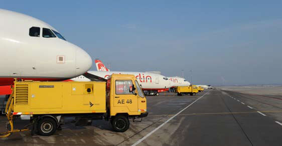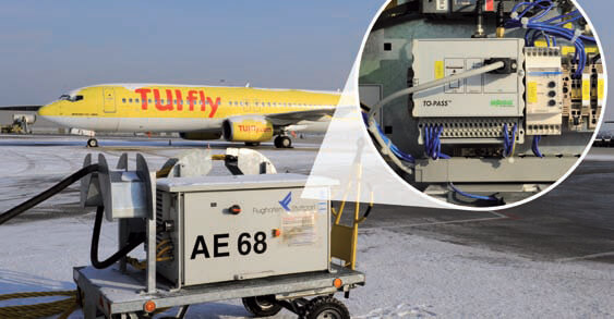 当飞机熄灭引擎后,机舱内的灯光会亮起,这是需要外部电源支持的。这样就不会使乘客处在黑暗中等待,同时飞机上的机组人员也可以进行检查工作。若在飞机上安装辅助涡轮机则会产生很大的噪音,环境效益差,所以被许多机场的停机坪禁止。最终,采用专门的机场电源车和供热车为着陆飞机提供一系列能源成为更好的选择。德国斯图加特市机场的电源车采用的是WAGO的TO-PASS®远动控制技术。