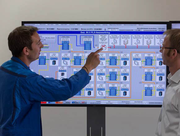 两年前,能源供应中心更新了热电联产系统, 在这一背景下,旁边的压缩空气中心新建了安全性更高的冗余网络基础设施。为确保基础设施组件冗余,宝马公司的技术人员选择了以太网环网拓扑结构。这一更灵活、更安全的交换技术取代了以往的星型拓扑。如今两座建筑物已通过光纤电缆连接。在压缩空气中心,控制器和压缩机通过网线连接到交换机。
