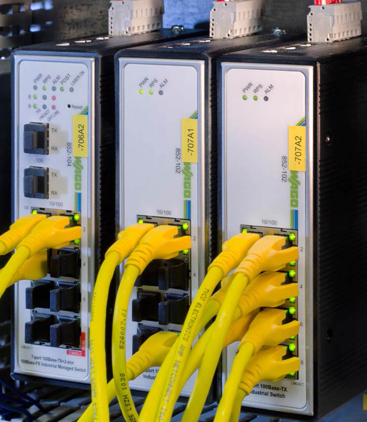 WAGO的工业以太网交换机在冗余环网中确保高度的可用性和安全性。