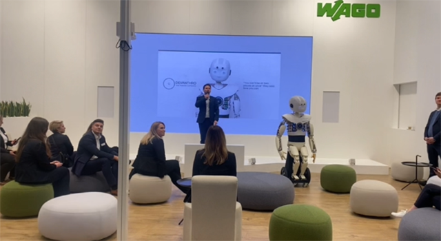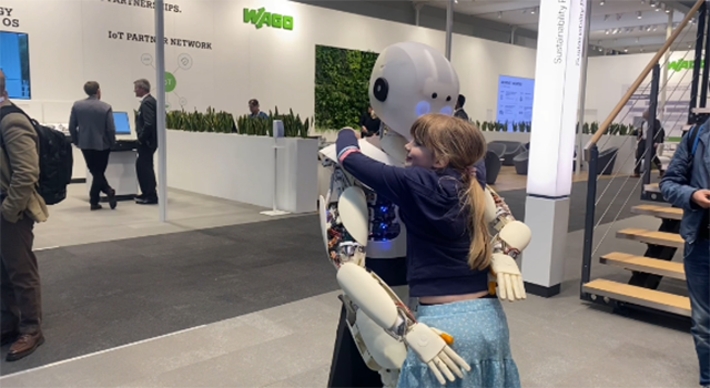 2023汉诺威直击 | 使用了万可电气连接技术的关爱机器人Roboy在现场和大家一起为爱加油